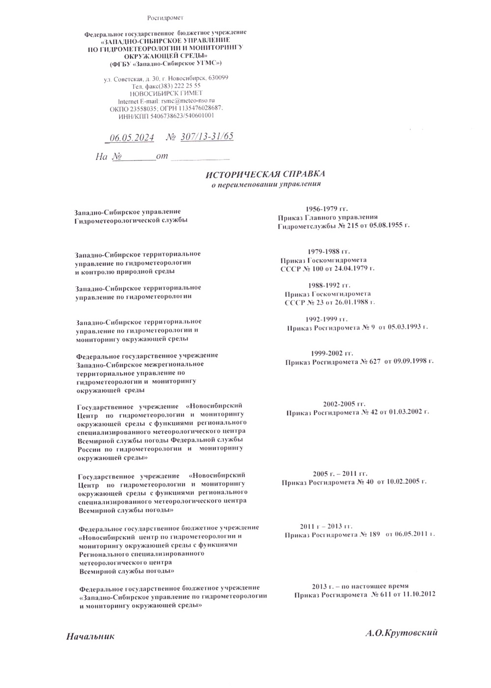 Федеральное государственное бюджетное учреждение «Западно-Сибирское управление по гидрометеорологии и мониторингу окружающей среды»