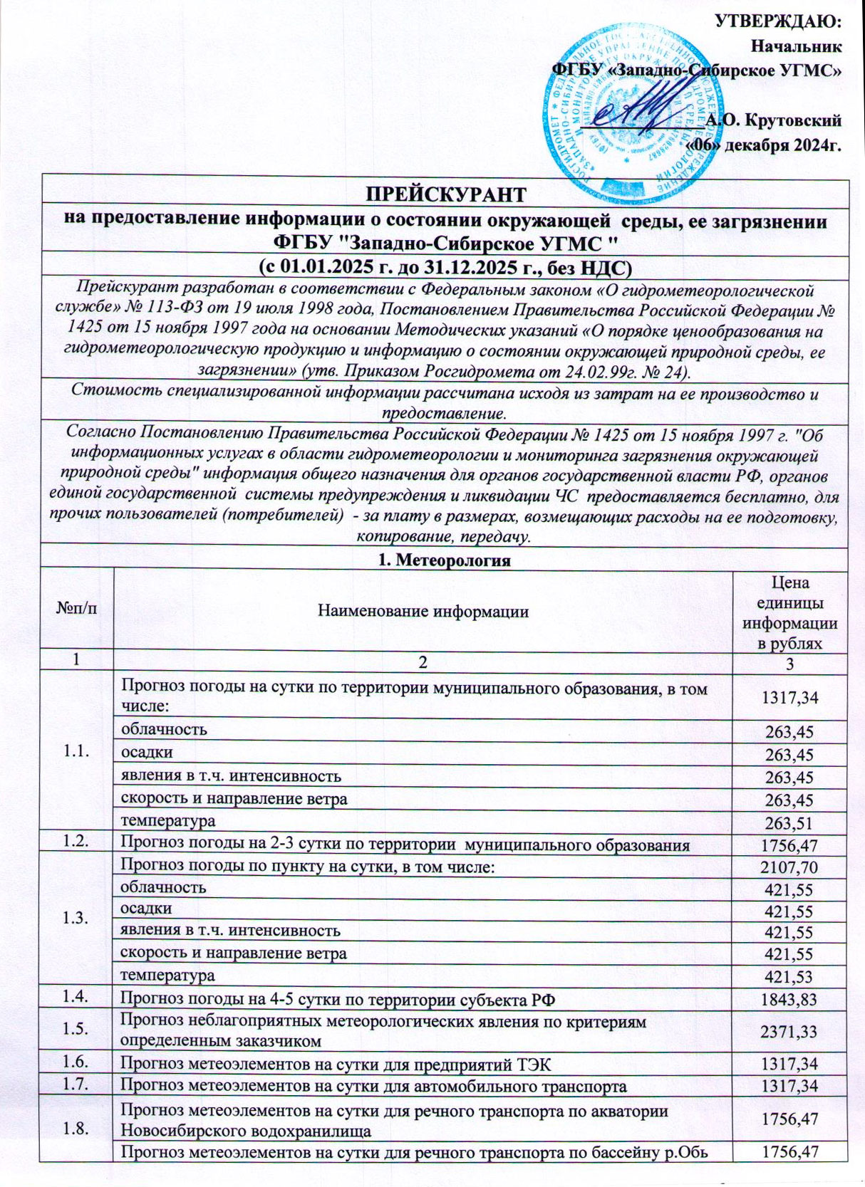 Федеральное государственное бюджетное учреждение «Западно-Сибирское управление по гидрометеорологии и мониторингу окружающей среды»